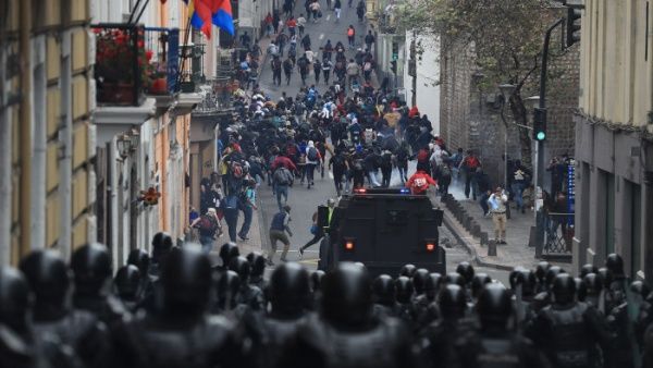 Le immagini della repressione in Ecuador non sembrano di questo secolo: carri armati militari che entrano nella capitale, centinaia di poliziotti antisommossa che sfilano per la Plaza de la República di Quito, veicoli corazzati che pattugliano il centro città, cecchini che sparano dai tetti degli edifici, messaggi sinistri del presidente Lenin Moreno affiancato dal comando congiunto delle forze armate…