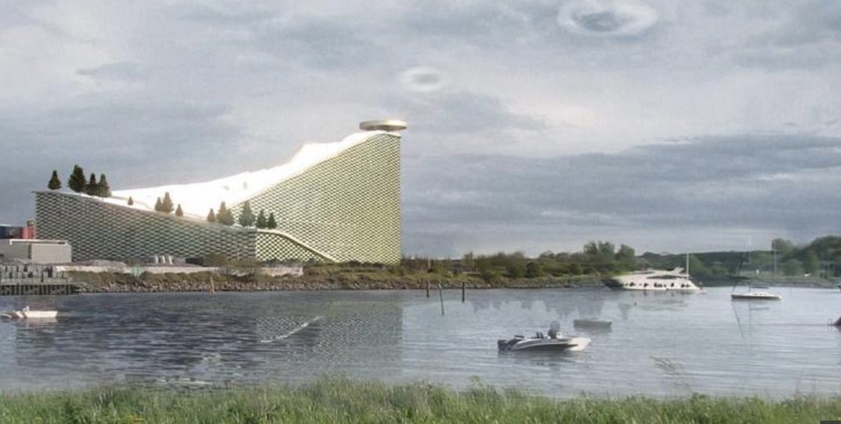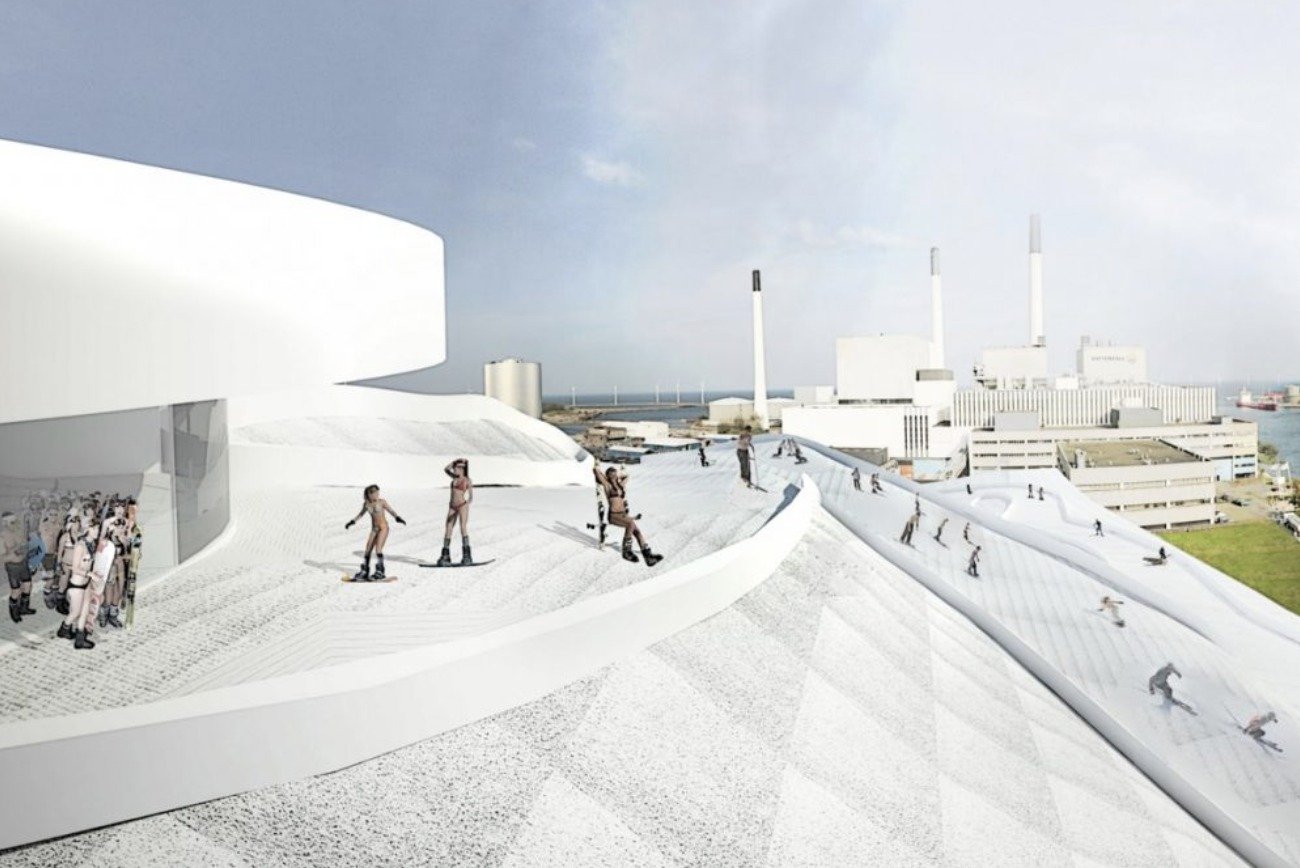 Nei prossimi giorni a Copenaghen si inaugurerà un inceneritore con recupero energetico, di ultimissima generazione, la cui sicurezza è sottolineata dalla possibilità di sciarci sopra. E il ministro multi-ruolo ha già annunciato che ci andrà, sci in spalla e in divisa da sciatore. Dubitiamo che i selfie che il suo staff per la propaganda diffonderanno, per la gioia dei fan del capitano, ci faranno ammirare il panorama intorno, che è quello che potete vedere nella foto che segue: in primo piano gli sciatori felici, sullo sfondo una selva di camini.