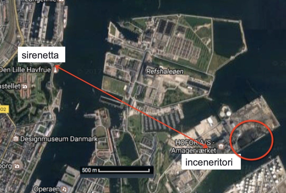 Il fatto è che siamo sull’isola di Amager, a quasi due chilometri di distanza dalla Sirenetta e a quattro chilometri dal centro della città, isola da sempre utilizzata per scopi industriali e che ospita anche l’aeroporto internazionale.