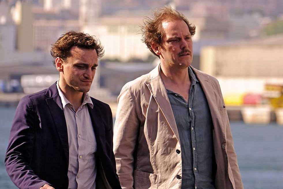 Questa è la sinossi più semplice e sintetica possibile di un film che in realtà ha una complessità enorme di scambi, incroci, maschere, desideri, rapporti e identità. Non vale la pena anticipare altro della trama, se non un dettaglio decisivo: non siamo nel 1945 e non assistiamo alle rese dei conti di fine seconda guerra mondiale. Siamo nel presente, che riecheggia nelle scenografie e negli ambienti. O meglio ancora; è come se fossimo in un “non tempo” anch’esso indefinito dove i dettagli chiarissimi del contemporaneo fanno da sfondo a una vicenda emblematica di 70 anni fa. Dove passato e presente si mischiano e si richiamano, annullandosi, esattamente come accade al falso, al reale e al plausibile. Dove, per esempio, il contesto bellico offre echi e rimandi inquietanti alla questione attualissima dell’emigrazione e del razzismo, e gli accenni ai campi di concentramento creano nelle menti dello spettatore altrettanto angosciosi riflessi sui campi profughi.