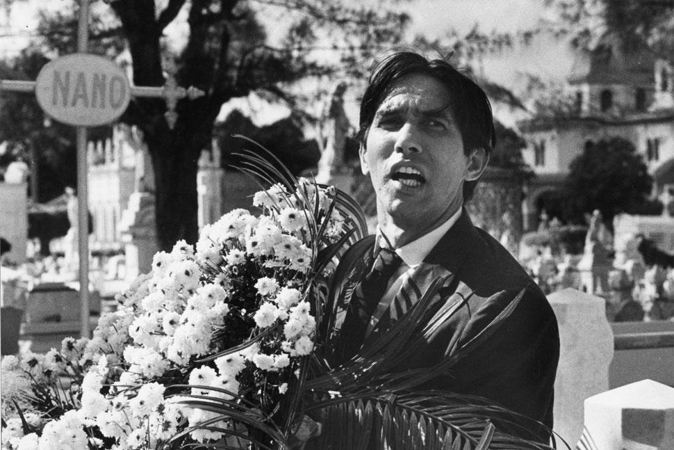 Del resto, la morte aleggia continuamente sul film; a livello di trama, come in un senso più beffardo e profondo. Lo zio defunto era celebrato per la sua produzione di busti funerari, e buona parte della narrazione si svolge tra le tombe, i viali e gli uffici del cimitero. Animali come civette e avvoltoi appaiono continuamente, intervallando le sequenze da comica slapstick muta. Su tutte, spicca la lunghissima ed enorme battaglia di corone di fiori, fanali d’auto e torte in faccia che scoppia a metà film, iniziata da una banale discussione tra il direttore del cimitero e un becchino e che si è allargata a macchia d’olio, memore delle apocalittiche e devastanti battaglie a torte in faccia del cinema di Stanlio&Ollio.