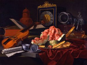 Michalkov è partito dall’anguria, che era presente nel racconto, per raccontare quella stanza, poche ore prima resa così viva dall’amore, come un’unica grande natura morta, dove il tempo (il ticchettio dell’orologio) divora tutte le cose. Nel regista c’era senz’altro memoria del genere pittorico della natura morta, tipico dell’età barocca, dove l’anguria è una presenza frequentissima. La si può trovare, per lo più aperta, insieme a fiori appassiti, a frutta bacata o ammaccata, a oggetti impolverati, a candele spente, a strumenti musicali poggiati e quindi silenziosi, a tazze rovesciate, a biscotti rosicchiati e a tante altre cose, delle quali condivide la simbologia: è la vita non più perfetta ma già consumata dal tempo, la fine e la morte che si celano in tutte le cose, la vanitas vanitatum. In questa scena Michalkov è così riuscito a rendere, solo per immagini, la riflessione che fa Čechov poco più avanti nel racconto, mentre i suoi due personaggi siedono su di una panchina, guardando il mare: «Le foglie degli alberi erano immote, le cicale frinivano e il monotono, sordo rombo del mare che giungeva di laggiù parlava della pace, del sonno eterno che ci attende. Così rumoreggiava, giù in basso, quando là non c’erano ancora né Jalta, né Oreanda, così rumoreggia ora e rumoreggerà in maniera altrettanto sorda e indifferente quando non ci saremo più. E in questa costanza, nell’assoluta indifferenza verso la vita e la morte di ognuno di noi, si cela forse il pegno della nostra salvezza eterna, dell’incessante moto della vita sulla terra, dell’ininterrotta perfezione».