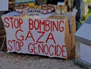 Multare un apicultore per una scritta pacifista esposta sul banchetto del mercato non è solo un eccesso di zelo delle forze dell’ordine. E il fatto che così sia interpretato da molti media è fonte di ulteriore preoccupazione. Perché mostra l’affacciarsi di un’idea di “normalità” che tutto accetta e metabolizza, anche l’assurdo e l’indicibile.