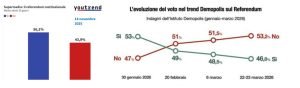 Questo il quadro di un voto che ci aiuta a respirare. Che quantomeno rallenta una deriva che si prospettava catastrofica, anche se ancora non la rovescia. Su questi dati dovremo ragionare a lungo, per evitare di sbagliare i prossimi passi (sulle prospettive si vedano in questo stesso sito gli articoli di Alessandra Algostino e di Sergio Labate). Quello però che mi sento fin d’ora di dire è che nessuno – davvero nessuno – può pensare di intestarsi questo voto. Di quotarlo in qualche modo alla sua borsa. Men che meno le forze politiche d’opposizione. Senza nulla togliere all’impegno profuso dai loro leaders e dai loro militanti su questo risultato non sono leciti atteggiamenti proprietari. Intanto perché, come si è tentato di dire fin qui, le variabili che spiegano il successo sono molteplici e complesse, intreccio di stati d’animo accumulatisi nel tempo (la sensazione di asfissia difronte a un potere incapace di accettare limiti) e di stimoli intervenuti nella più diretta attualità (il genocidio a Gaza, la guerra sempre più vicina e dentro di noi). E poi perché i protagonisti, direi principali, di questa campagna elettorale tutta in salita, è stato un attivismo diffuso fatto di una miriade di realtà – associazioni, gruppi spontanei e micro-strutture consolidate, singole persone in forma di volontariato, giuristi, normali cittadini, scolaresche, bocciofile, artisti, un’intera galassia di soggettività, e poi quei 15 che hanno avuto la felice intuizione della raccolta delle firme-… Tutto questo ha contribuito a produrre il miracolo, il cui percorso di formazione è scritto nella successione cronologica dei sondaggi: dalla partenza, quasi 15 punti sotto, a novembre, fino al punto di pareggio e poi di sorpasso nella prima metà di febbraio (quando appunto è partita la raccolta delle firme) fino alla vittoria del 22 e 23 marzo. Tutto questo mondo non è di per sé “disponibile” per il giorno delle elezioni politiche. Questi voti dovranno essere conquistati e, direi meglio, “meritati”. A cominciare da una questione che considero centrale nell’aver determinato l’impennata della partecipazione a livelli imprevisti da tutti (insieme all’intollerabilità degli abusi di potere e della faccia tosta di questa maggioranza, sintetizzati dall’orrendo caso Delmastro): il tema esistenziale della Pace e della Guerra, quello che ha mosso le ragazze e i ragazzi dell’ultima generazione. Quello che non tollera ambiguità. Quello che ci riporta direttamente alla vitalità della nostra Costituzione, col suo articolo 11. Un tradimento su questo terreno sarebbe, per tutti noi, intollerabile.