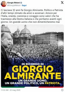 Ecco, tutto questo accanirsi a sminuire, minimizzare, derubricare mostra una preoccupante incapacità di capire come il curriculum di una classe politica sia intrinsecamente connesso con la sua qualità nella focalizzazione e risoluzione dei problemi. Che un gruppo dirigente proveniente da un percorso di formazione all’insegna della nostalgia per un passato aberrante e distruttivo è inevitabilmente segnato da una bassa qualità, o dall’assenza di qualità. O, al limite, da qualità negative, quali una visione improntata a una sorta di darwinismo sociale, al culto della forza e della sopraffazione, al ricorso a stilemi retorici distorcenti. Per questo continuiamo a ribadire l’inseparabilità tra “questione antifascista” e questione politica e sociale, in una parola: “Questione democratica”. E insieme consideriamo patetica l’invocazione, che sorge un po’ dappertutto nella sfera politica e mediatica, alla Presidente del Consiglio a “prendere le distanze”, a dire almeno una parola di dissociazione, e separare se stessa da quei manipoli che degradano l’immagine dell’Italia in Europa e nel mondo. Patetica perché ignora che Giorgia Meloni è ciò che è. Parte di quella storia, di quella vicenda fino a qualche anno fa minoritaria. Segnata da quell’imprinting. Dalla dipendenza da quei padri fondatori, come Giorgio Almirante, il vero anello di congiunzione tra gli orrori della Repubblica sociale e il neofascismo missino post-bellico. Si legga il libro di Davide Conti, Fascisti contro la democrazia, si presti attenzione soprattutto al sottotitolo: “Almirante e Rauti alle radici della destra italiana”(e se il libro richiedesse troppo tempo se ne legga almeno l’ampia recensione di Antonella Tarpino). Vi si dimostra con rigorosa documentazione come l’Msi di Giorgio Almirante sia ex origine implicato con quel “sovversivismo” che il clima della Guerra fredda aveva coltivato e protetto sul confine labile tra legalità e illegalità, e come in particolare dalla fine degli anni sessanta quel partito e quell’”ambiente” sia stato parte attiva in quella “strategia della tensione” che costituiva insieme l’effetto di una vocazione violenta e la fonte di legittimazione di pratiche estreme. Vi si trova anche una perfetta descrizione della “doppiezza” tradizionale almirantiana, intreccio – esattamente come oggi – di “cattivismo” e di “vittimismo” (si pensi alla teoria delle “trame bianche” per allontanare da sé il sospetto di complicità con lo stragismo). Chiedere a Giorgia Meloni di “prendere le distanze” da quel retroterra significherebbe chiederle di prendere le distanze da se stessa: una cosa che potrebbe magari anche fare se tiratavi per i capelli, ma che non sarebbe certo gesto di sincerità politica e culturale, anzi.