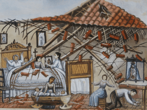 Nella società tradizionale si apparteneva ad una casa, a un orto, a una proprietà, a una località, a una chiesa. Cosa non si è fatto per la casa nella società tradizionale, del passato! Litigi, risse, maledizioni. Perdere la casa era perdere tutto. La peggiore maledizione che si poteva lanciare a una persona era che davanti alla sua casa crescesse l’erba. La casa vuota era la fine di tutto. Morire lontano da casa, non poter fare uscire da casa i defunti per attraversare il “ponte di San Giacomo”, non poter accompagnare il moribondo negli ultimi istanti della sua vita, non poter elaborare il lutto nella propria casa comportavano smarrimento, angoscia, disperazione. Abbiamo visto in questi giorni come usanze, pratiche, credenze, ritualità messi in atto durante la malattia, l’agonia, la morte, il lutto, che sembravano essere state cancellate e rimosse, in realtà siano tornate come rimorso e rimosso, a conferma che forse troppo sbrigativamente avevamo immaginato di esserci liberati di quelle che consideravamo pratiche arcaiche, inadatte alla “modernità”, e che invece, nelle situazioni di crisi e di catastrofe, riportano l’uomo alla sua fragilità, al bisogno di condividere il dolore con gli altri, alla necessità di mettere in atto parole, gesti, riti che, comunque, ti possano restituire la “presenza” anche mentre l’intero mondo sembra finire. Le abitazioni del passato erano spesso precarie – tuguri, baracche, stanze dove vivevano, mangiavano e dormivano anche dieci persone, spesso assieme agli animali – eppure il “crollo”, la perdita, della casa era la più grande sventura, esito di una terribile maledizione.