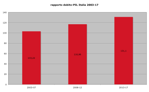 È evidente, quindi, che il debito non deriva da aumenti di spesa – che anzi è stata progressivamente ridotta con i tagli della politica d’austerità – ma dal debito stesso: è il debito che alimenta se stesso. Quindi il deficit di cui si parla e che nel rapporto con il PIL non deve superare il 3%, secondo il parametro fissato arbitrariamente a Maastricht nel 1993, è determinato non da un eccesso di spesa corrente o per investimenti, ma esclusivamente dal pagamento degli interessi sul debito. Insomma l’Italia fa debiti per pagare i debiti in una spirale di crescente dipendenza.