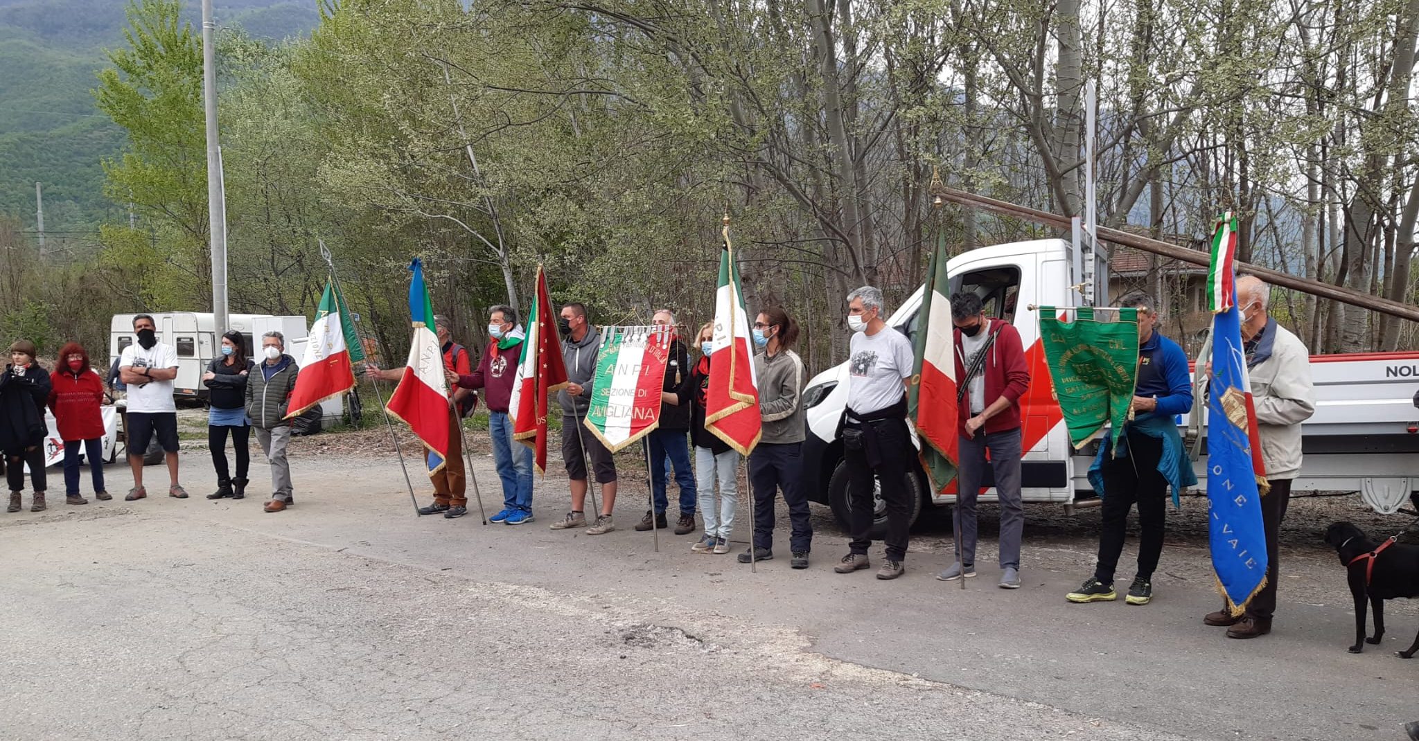 Si chiude in bellezza la giornata del 25 aprile, tanta partecipazione, tanti stendardi Anpi, tutti schierati sul piazzale di San Didero di fronte al nuovo cantiere costruito e imposto con la forza:
