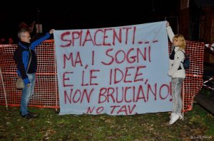 Il secondo mi viene da un frammento dell’esperienza – unica per intensità e durata – del movimento No Tav. Era il 2013. A Vaie (piccolo centro della bassa Valle di Susa) c’era un presidio No Tav costruito da giovani e vecchi del posto: luogo di riunione, di discussione, di giochi, di ospitalità per centinaia di ragazzi venuti negli anni da ogni parte d’Italia per conoscere e per partecipare. Una notte di fine estate il presidio è stato bruciato (come altri negli anni) nel silenzio dei media. I carabinieri hanno per qualche settimana indagato interrogando i ragazzi che ci giocavano, evidentemente ipotizzando che l’incendio fosse dovuto a qualche scherzo goliardico (sic!), e poi sono passati ad altro. Parallelamente, in meno di un mese, a fianco del presidio bruciato, ne è stato costruito uno provvisorio dove sono stati festeggiati Natale e Capodanno.