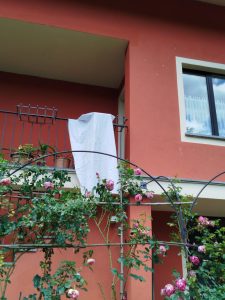 Che le rose in questo mese di maggio siano fiorite non è una notizia, così come i gerani, ma vederli sullo sfondo in uno scatto fotografico, o in primo piano, imporsi, approfittando del bianco delle lenzuola appese, fa bene al cuore. Sono sudari come li ha chiamati Tommaso Montanari (https://vll.staging.19.coop/in-primo-piano/2025/05/23/un-sudario-per-gaza/), un’iniziativa semplice lanciata insieme a Paola Caridi per ricordare i morti di Gaza: «I corpi dei palestinesi morti ammazzati, diventati simbolo della strage. Sono, cioè, gli oggetti comuni del nostro tempo crudele. Tempo di genocidio. Il sudario ricopre, sottrae alla vista del mondo il corpo di cui è stato fatto scempio. Avvolgere nel sudario è un gesto estremo di cura, di pietas. Protegge la dignità degli esseri umani quando le vite non valgono più niente, nella conta approssimativa dei morti. Come si fa a piangere, onorare la memoria, dei morti di Gaza in quasi 600 giorni di assedio? Come si fa a piangerli uno per uno? Proviamo a farlo, in silenzio, sabato 24 maggio: in ogni città, paese, contrada d’Italia».