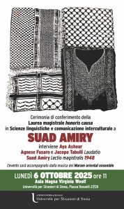 Buongiorno, e benvenuta sia ogni persona che oggi è convenuta in questa Aula Magna. […] Saluto in modo tutto speciale la professoressa Suad Al Amiry, che oggi riceverà il massimo riconoscimento che il nostro ateneo può conferire, deciso dagli organi accademici della Stranieri, con la piena e formale approvazione del Ministero dell’Università e della ricerca. Vi ho salutato e accolto con le parole di Haidar al Ghazali, giovane poeta palestinese, nato a Gaza nel 2004, e lì tuttora imprigionato: in attesa della liberazione, o della morte.