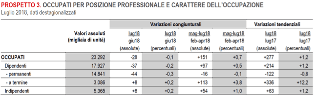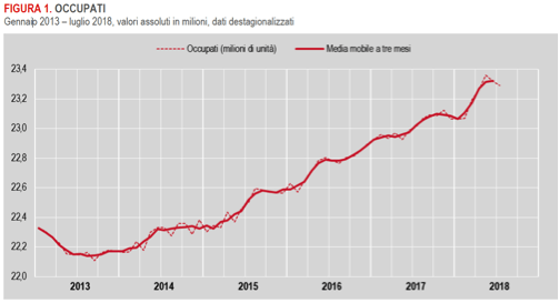 Fonte ISTAT: occupati e disoccupati, luglio 2018