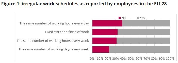 L’orario di lavoro, in costante evoluzione e sempre più irregolare, è diventato un’esperienza comune per i lavoratori europei. In effetti, circa un dipendente su tre nell’Unione Europea dei 28 paesi membri ha riferito di avere orari di lavoro irregolari.