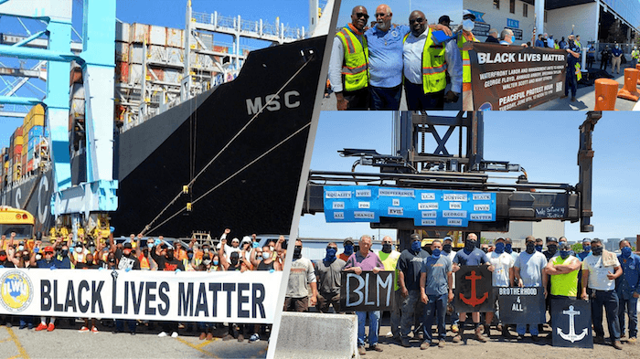 Il 19 giugno, membri dell’International Longshore and Warehouse Union (ILWU, uno dei sindacati antirazzisti più radicali nel paese che agisce in solidarietà a tutti coloro che sono minacciati dalla violenza della polizia) hanno chiuso 29 porti lungo la costa occidentale in solidarietà con continue proteste per l’omicidio di George Floyd. Il giorno dell’azione è  previsto per Juneteenth , il giorno che celebra l’annuncio del proclama di emancipazione agli schiavi texani la cui entrata in vigore avvenne più di due anni dopo l’annuncio.