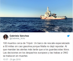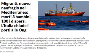 A bordo del gommone sarebbero partiti in 120, sono un centinaio i dispersi. E sono stati avvistati altri tre barconi con circa 345 persone, sempre a est di Tripoli. Lo dice Ayoub Gassim portavoce della guardia costiera libica parlando con l’Associated Press. I sopravvissuti sono stati trasferitinella regione di Al-Hmidiya, a 25 km a est del confine. Tutto nel giorno in cui il ministro dell’Interno Salvini annuncia la chiusura dei porti italiani alla Ong e il ministro dei Trasporti Toninelli ‘scappa’ davanti alle 24mila firme raccolte per chiedere invece di non ostacolare il lavoro dei soccorritori. Non è ancora chiaro se il gommone affondato sia lo stesso, con 150 persone senza salvagente, avvistato questa mattina da un aereo militare spagnolo che aveva allertato la Open Arms, la nave della Ong Proactiva che è in zona Sar. La nave non è potuta intervenire perché il gommone distava ottanta miglia ed è a corto di carburante. “Siamo senza benzina perché Malta non ci ha concesso il rifornimento e non ci fa entrare nelle sue acque territoriali”, ha detto Riccardo Gatti dalla Open Arms. Da bordo si sono poi messi in contatto con la sala operativa della Guardia costiera di Roma che ha spiegato che il soccorso era stato preso in carico dai libici.