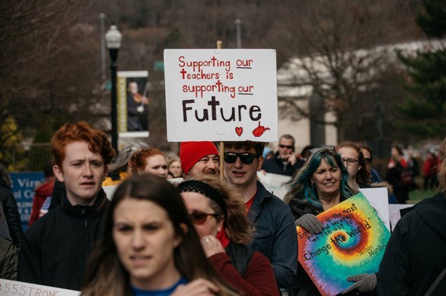 Anche quelli delle insegnanti dei “red states” non sono stati scioperi convenzionali. Negli stati coinvolti dalla mobilitazione, continue riduzioni delle imposte approvate dai governi repubblicani hanno significato tagli ingenti ai finanziamenti all’istruzione pubblica. Oltre ad avere un impatto severo sulla qualità dell’istruzione offerta e sulle infrastrutture, questi tagli si sono anche tradotti in un abbassamento vertiginoso degli stipendi. Questa dinamica è andata avanti per anni all’interno di un quadro legislativo del tutto ostile, in cui i dipendenti pubblici non hanno diritto di sciopero e la contrattazione collettiva non esiste. In West Virginia, come in Oklahoma, Arizona e Kentucky, fare l’insegnante vuol dire essere costretti ad arrabattarsi tra due o tre lavori, perché lo stipendio da docente non è sufficiente nemmeno a garantire la mera sopravvivenza. Le condizioni di lavoro sono diventate con il tempo talmente intollerabili, che questi stati fanno ormai fatica a trovare il personale docente di cui hanno bisogno, il che ha paradossalmente contribuito a rafforzare la posizione dei docenti in sciopero.