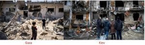In effetti, le aggressioni contro Gaza dovrebbero essere tenute in debita considerazione nel valutare l’attuale crisi in Ucraina. Il fatto che le immagini vengano confuse non è una pura casualità: in Ucraina non sono stati colpiti molti grattacieli, mentre a Gaza è accaduto di frequente.