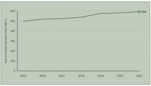 L’andamento delle vendite di armamenti da parte delle prime 100 aziende del settore dal 2015 al 2021. Fonte: Sipri, 2022