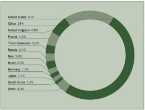 Veniamo ora alle 100 multinazionali oggetto dello studio. Gli Stati Uniti sono il Paese più rappresentato: sono 40 le aziende Usa tra le prime 100 e le prime cinque per valore assoluto: Lockheed Martin, Raytheon technologies, Boeing, Northrop grumman e General dynamics. Nonostante abbiano affrontato una diminuzione delle vendite di armamenti, perdendo lo 0,9% rispetto al 2020, le principali aziende statunitensi hanno venduto materiale bellico per un totale di 300 miliardi di dollari, pari al 51% della spesa esaminata. Un calo che ha riguardato quattro dei maggiori cinque produttori con l’esclusione di Raytheon Technologies che ha aumentato le vendite del 9,1%. Una particolarità del “mercato” statunitense riguarda le recenti acquisizioni e fusioni tra i produttori del settore. Una delle operazioni più significative è stata l’acquisto da parte di Peraton di Perspecta, azienda specializzata in informatica governativa, per 7,1 miliardi di dollari. «Probabilmente nei prossimi anni potremo aspettarci un’azione più incisiva da parte del Governo statunitense per limitare le fusioni e le acquisizioni nell’industria degli armamenti – ha dichiarato Nan Tian, ricercatore senior del Sipri –. Il dipartimento della Difesa degli Stati Uniti ha infatti espresso la preoccupazione che la riduzione della concorrenza nel settore possa avere effetti a catena sui costi di approvvigionamento e sull’innovazione». Un timore piuttosto paradossale considerando come funziona il mercato delle armi, con gli Stati a fare da principali committenti.