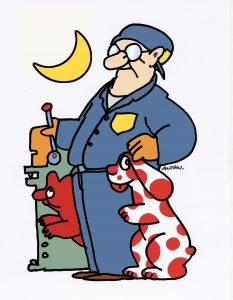 Sapore dolce la presenza del fumettista (anche se il termine gli va stretto), che io non conoscevo di persona, ma che non vedevo l’ora di conoscere. Un signore vecchio stile, al quale mi sono rivolto così: «Creda, per me è un onore, è un po’ come se conoscessi Schulz». E lui: «Beh, per me è un onore essere paragonato a lui». Seguiva dedica a mio figlio su Trino. E poi dediche a non finire ai bimbi, con Pimpa o senza.