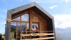 Siamo a Pion da Charm (borgata Durandin), nel punto più alto del Comune di Ostana, 1640 metri di altitudine, alta Valle Po, il secondo Comune che si incontra dopo le sorgenti del più lungo e importante fiume d’Italia. Il Comune (poco più di 80 residenti) ha allestito, con fondi europei – 214 mila euro provenienti dal FESR (Fondo Europeo agricolo per lo Sviluppo Rurale) – il nuovo caseificio comunale e lo ha affidato a due giovani, Eloise Vignon e Matteo Cottura che si sono conosciuti alla Scuola statale di specializzazione in allevamento caprino di Clermont Ferrand. La struttura architettonica, progettata con l’utilizzo di materiali locali declinati in maniera innovativa ed ecosostenibile, è stata progettata con la supervisione del Politecnico di Torino e realizzata da una Cooperativa in cui sono attive maestranze locali, compreso uno dei migranti che il Comune ha chiesto di accogliere e che ora, con il ricongiungimento familiare, vive stabilmente qui.