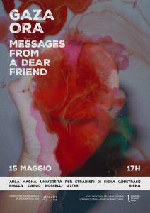 Mercoledì 15 maggio, alle 17, l’Università per Stranieri di Siena ospiterà la prima nazionale di Messaggi da Gaza, ora.